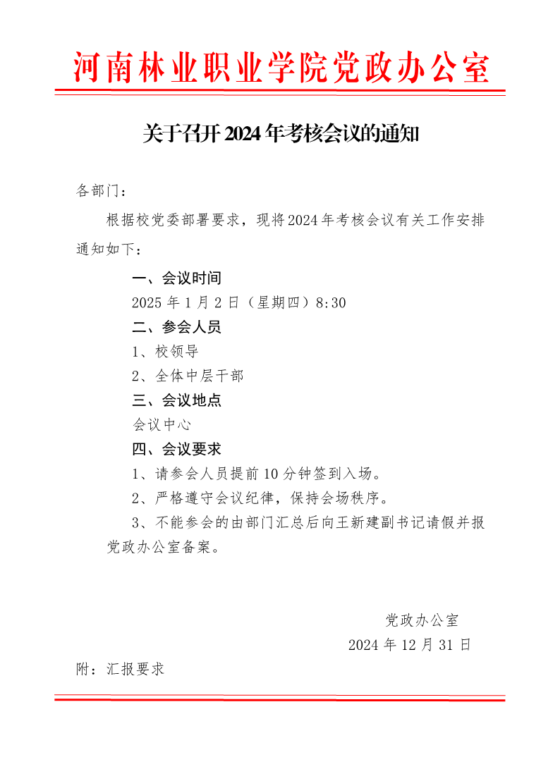 关于召开2024年考核会议的通知