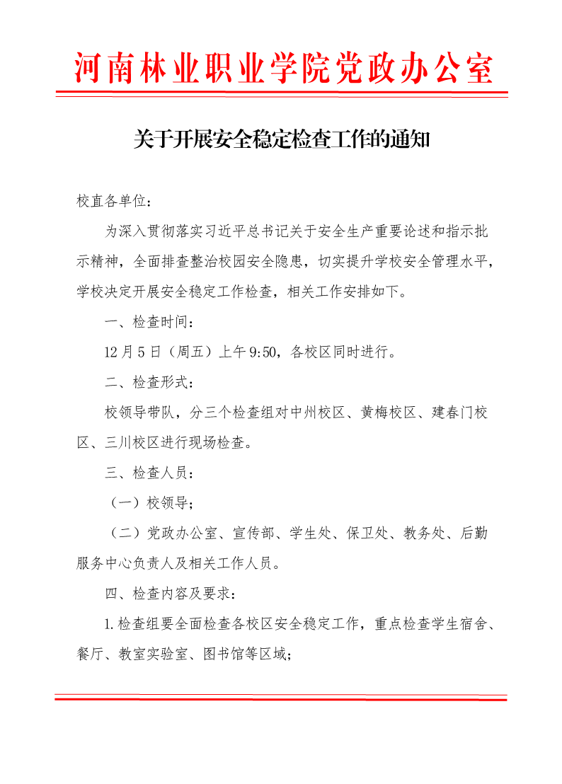 安全稳定工作检查通知