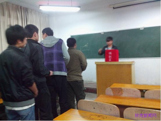 捐款仪式于4月24日晚7:30在1403教室举行。当晚,同学们以班为单位,按次序捐款,将自己的一份爱心投入捐款箱中,纵然数额不多,但大家仍想向灾区人民献出一份爱心,送去一片真情,尽自己所能帮助灾区人民。