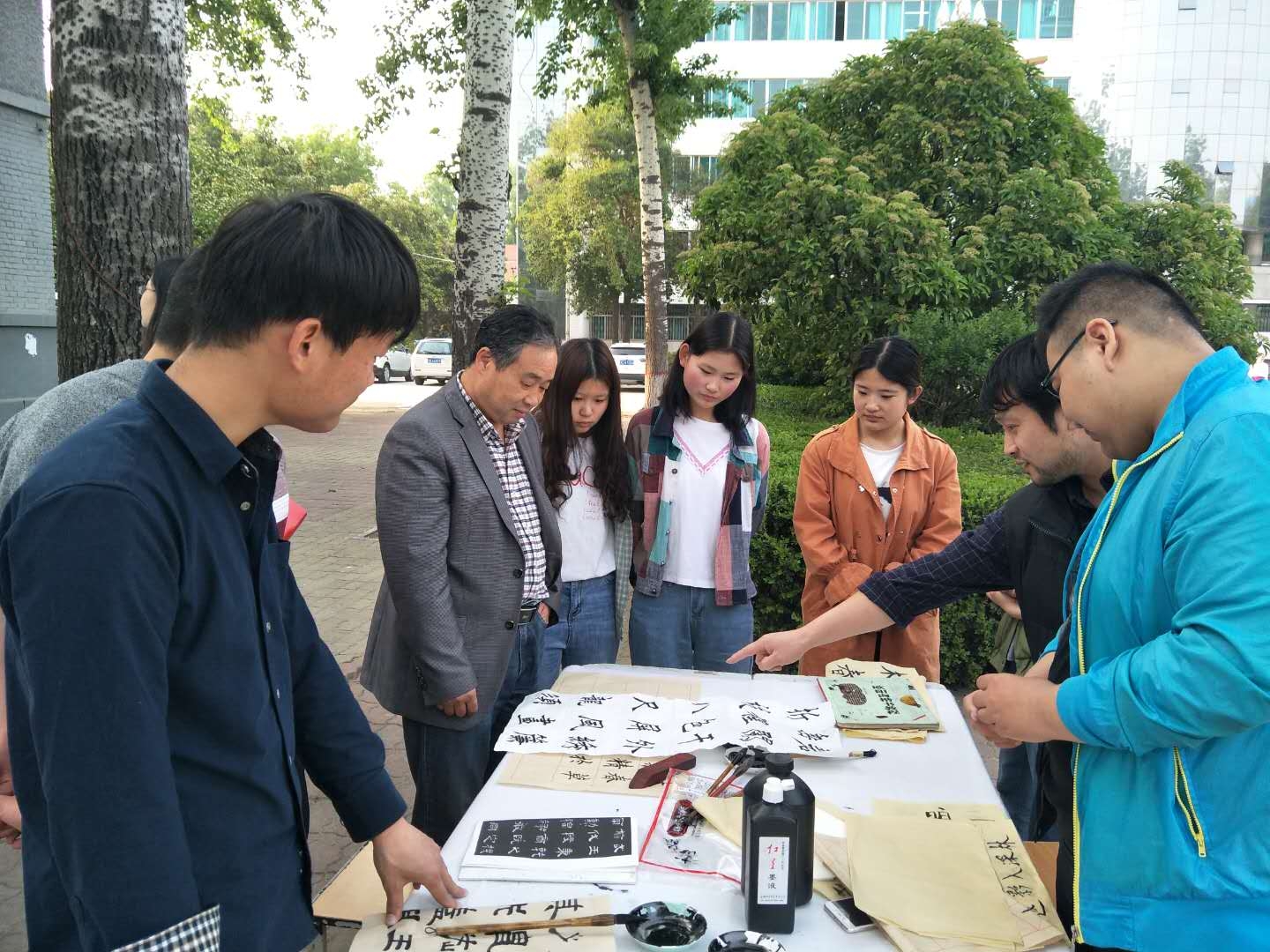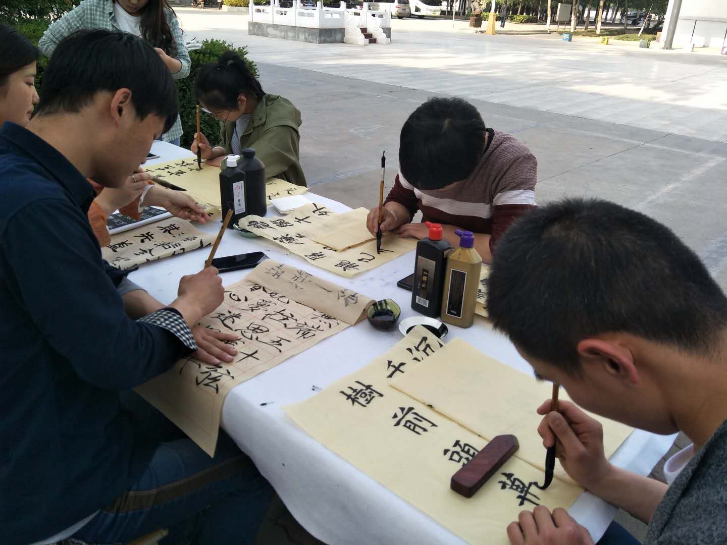 为了宏扬中国传统文化,推进广大师生对文化艺术的追求,加强校园文化氛围建设,为全院师生提供一个良好的切磋交流平台,2018年4月17日下午,我院书画社在院广场举办现场书画展。