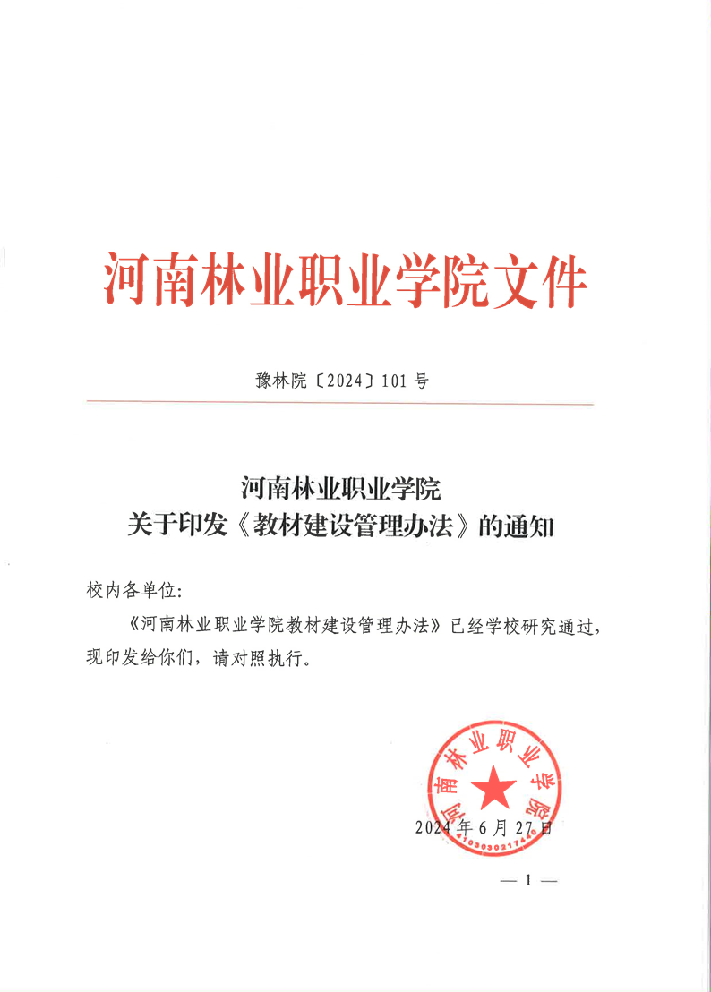 河南林业职业学院教材建设管理办法