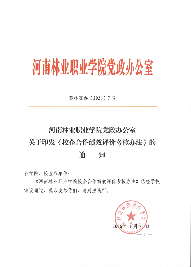 河南林业职业学院校企合作绩效评价考核办法