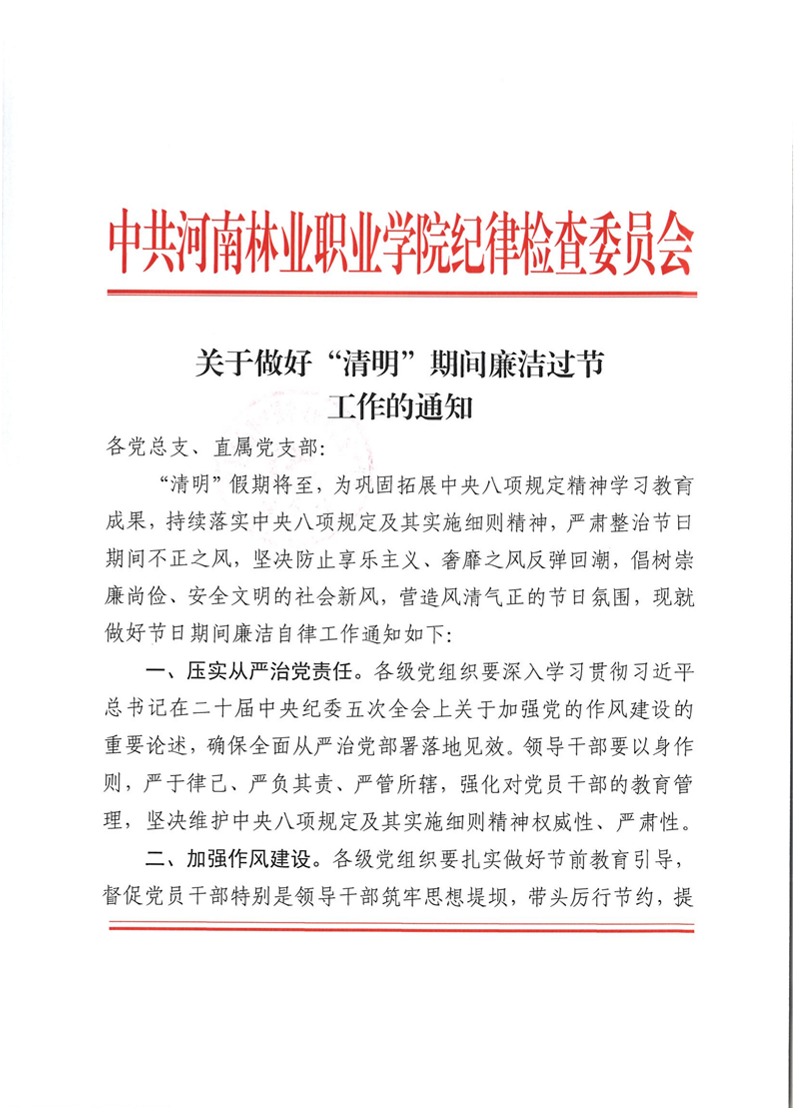 关于做好“清明”期间廉洁过节工作的通知