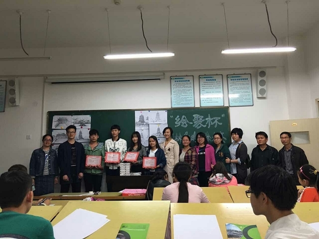 本次比赛创作内容是结合河南林业职业学院写生实习课程的实践基地(洛阳文化建筑)为主题相关内容的手绘作品。参赛方式为活动现场创作,主办方提供图片,参赛者自行选择。参赛时间3个小时,要求完成两张作品,一张精细钢笔画,一张钢笔速写草图。表现形式:钢笔画线稿,不上色。图幅不小于A3幅面。经过三个小时的认真作图,最终速写草图组评选出:2名一等奖,5名二等奖,10名三等奖,其余为参与奖。精绘精细稿评选出:2名一等奖,5名二等奖,10名三等奖,其余为参与奖。园林系主任陈涛老师、唐敏老师、李高峰老师给大家颁发了证书与奖品。比赛结束园林系主任陈涛老师做了几点总结:第一、非常感谢郑州绘聚手绘设计研究中心、绘者聚正文化传播有限公司对本次比赛的大力支持;第二、非常感谢符蕊老师、王慧君老师、方方老师三位园林美术专业老师的精心筹划与准备以及各位其他老师的大力支持;第三、非常感谢所有参赛学生的积极参与。