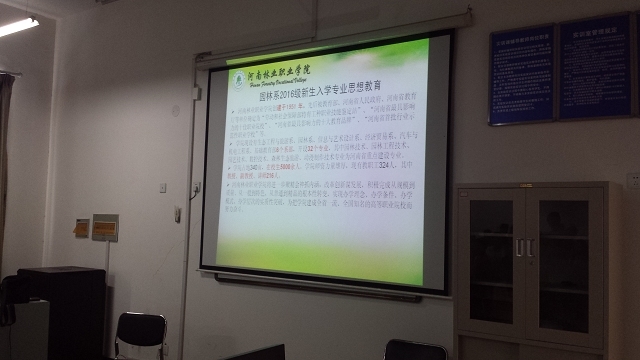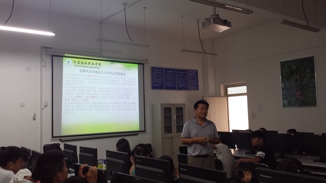 其次,在实训楼406教室,系主任陈涛老师向园林系2016级各专业五年制新生介绍了学院基本情况,陈老师代表全系师生由衷的欢迎新生的到来,他从学院历史、学院现有的系部专业情况、师资情况以及学院未来发展方面做了新生入学专业思想教育,引导学生爱校、爱家。接着从农林牧渔大类角度出发对我们系各专业的学习内容、课程设置、就业前景方面以及我国园林教育发展概况等做了介绍,并且通过举实际例子对园林技术与园林工程技术两个专业的不同之处以及他们的相关联性做了详细介绍。最后,希望学生们都树立远大理想、志存高远、追求卓越,刻苦学习,用每一天的真诚和努力共同去开拓美好未来。党支部书记叶召权老师强调了在专业认知时要注意的学习方法和纪律问题。