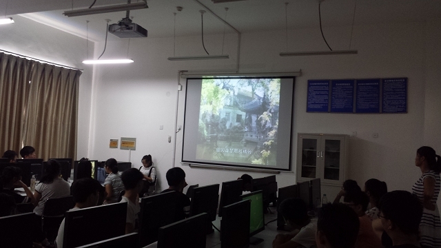 紧接着在实训楼406教室让学生们观看了关于苏州园林的相关视频,让学生们体会园林在规划设计方面体现的时代特征、园林作用与意境的表达,也通过园林内部的建筑向工程造价专业的学生讲述建筑的基本形式,让同学们对园林和建筑有一个初步的认识。
