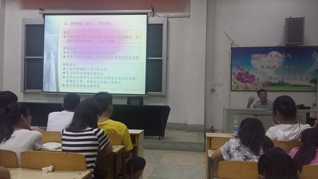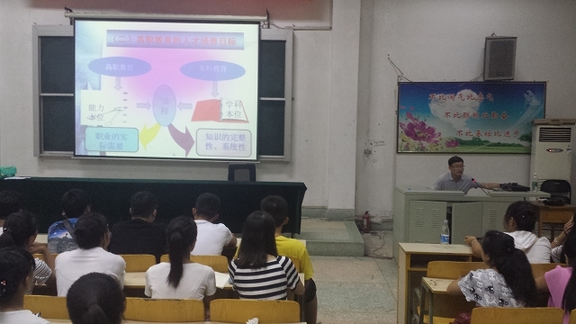 2016年9月11日晚上7:30,园林系支部书记叶召权老师在西阶梯教室为16级高职新生做了专题讲座。主要从大学是什么?为什么要上大学?大学的学习和生活是怎样的?大学这3年,我们应该如何度过?这几个方面展开讲解。