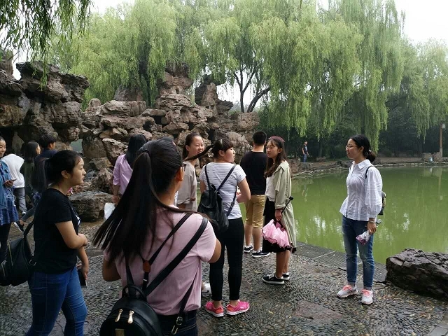 张丹、谢珊珊老师带领学生在西苑公园学习园林工程。