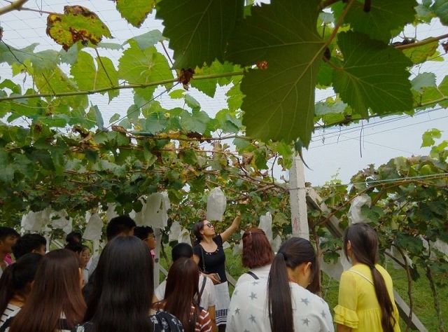 园艺专业在王朝霞、张庆瑞、朱瑞琪等老师的带队下到千度红葡萄公园认知实习。