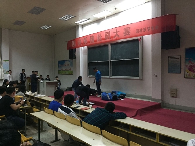 4月27日晚7:30,园林系学生会在我院东阶梯教室举行了“套路与真诚”大学生情景剧比赛决赛。系团总支书记曹晓彩老师、辅导员李静、汪燕、刘兰兰、李晓帅等老师担任本次大赛嘉宾和评委,各支参赛代表队指导教师及学生代表参加了此次活动。