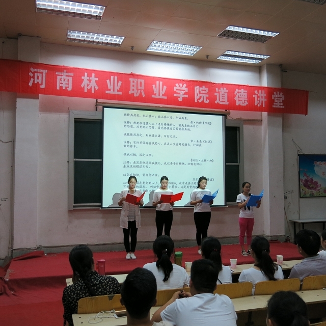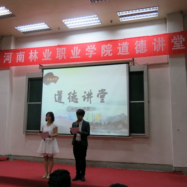 2017年5月25日晚7:30,由园林系团总支承办的道德讲堂在我校西阶梯成功举办。园林系主任陈涛老师,园林系团总支书记曹晓彩老师,园林系辅导员张延老师、李静老师、陈瑞林老师、刘兰兰老师、李晓帅老师、汪燕老师参加了此次活动。