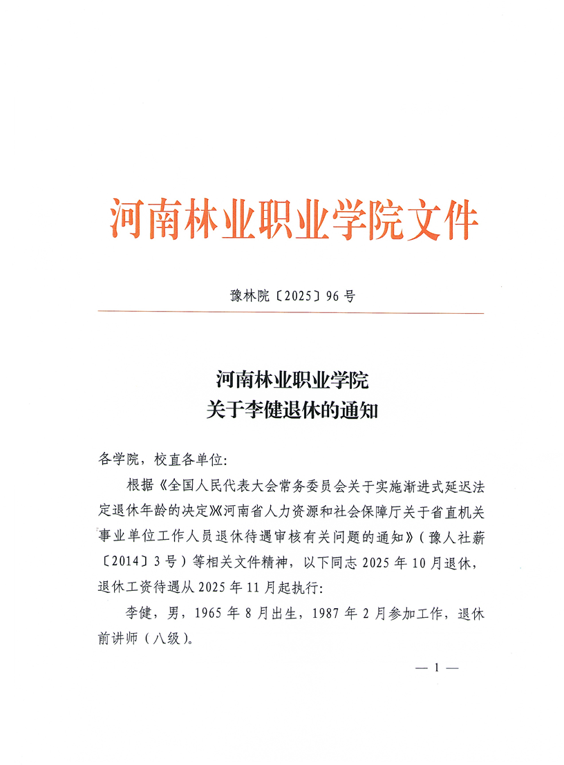 关于李健退休的通知