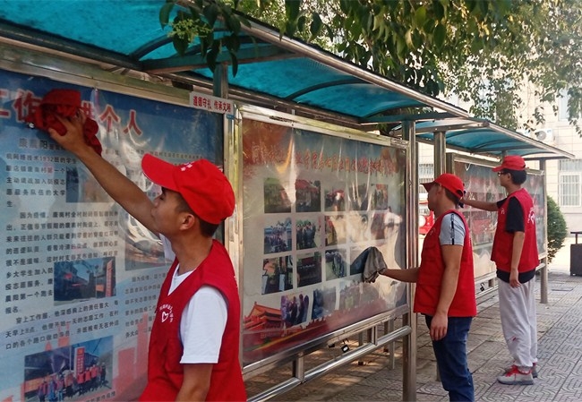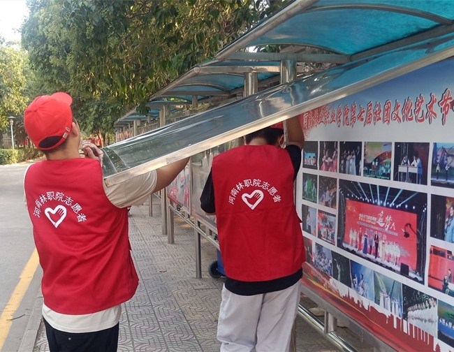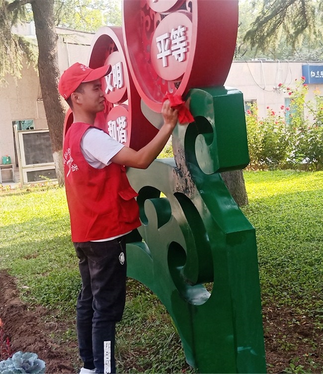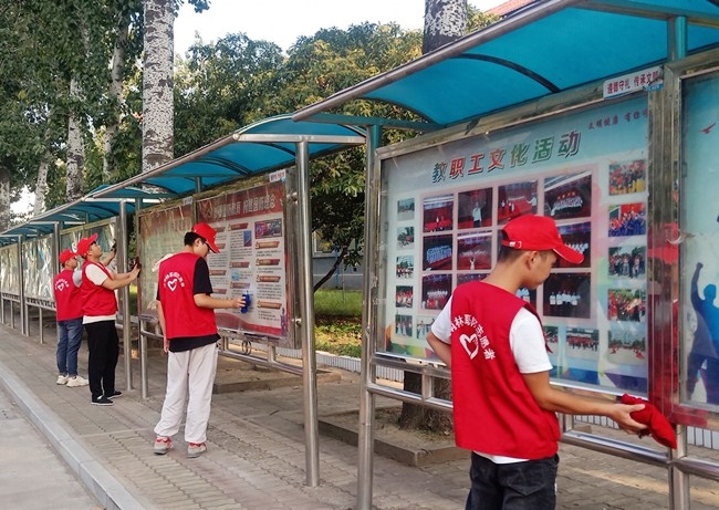 院团委组织开展清洁家园志愿服务活动 作者:王梦云 来源:团委 发布时间:2020-09-14 08:37:03 浏览次数: 次 【字体:小 大】 9月11日下午,院团委组织学生会、青年志愿者大队等学十余名学生干部在校园内开展“清洁家园”志愿服务活动。志愿者们分别对校园内的立体雕塑、宣传栏、宣传展板等进行了擦拭和清理,校园环境焕然一新。志愿者们通过实际行动为学院文明校园创建贡献力量,为促进我市生态环境持续改善和建设美丽河南贡献青春、智慧和力量。 分享到: 【打印正文】