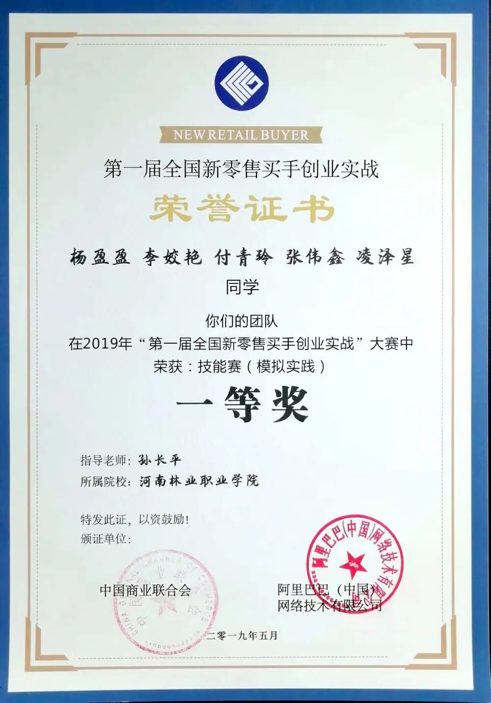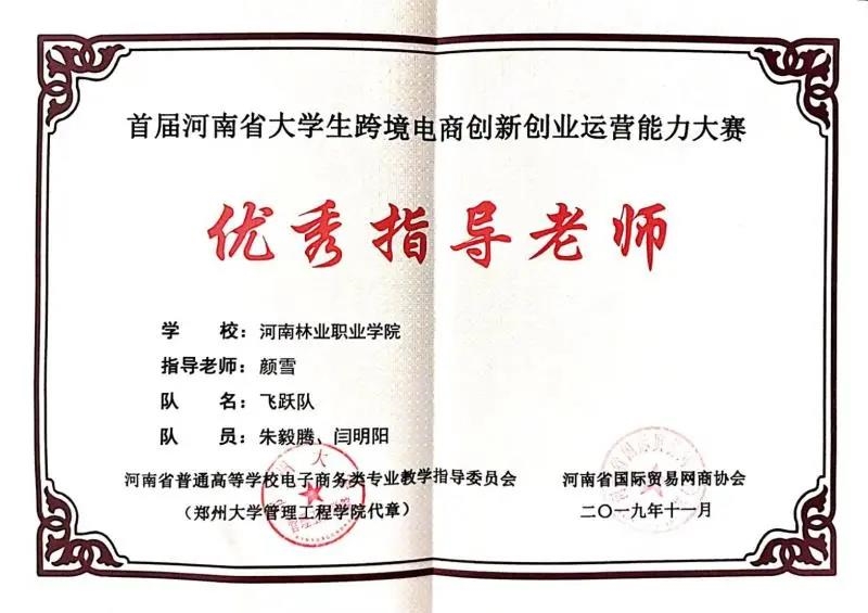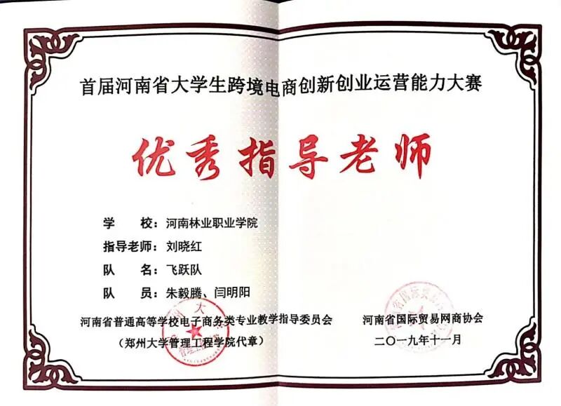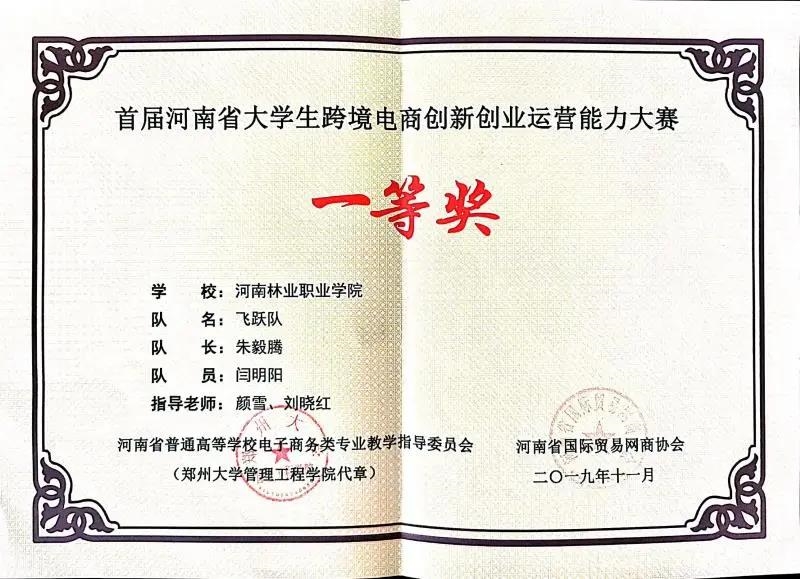 2019年,荣获河南省首届跨境电商创新创业运营能力大赛一等奖。