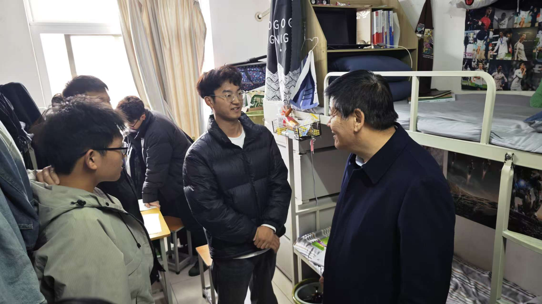 检查组一行首先来到了学生公寓区,这里是学校安全工作的重点区域之一。李书民书记和张光宇副校长详细了解了学生宿舍的取暖、用电情况,并特别关注了是否存在擅自使用大功率电器、电线私拉乱接等问题。他们指出,要进一步加强学生宿舍的安全管理,确保用电安全,严防火灾等安全事故的发生。