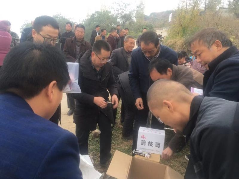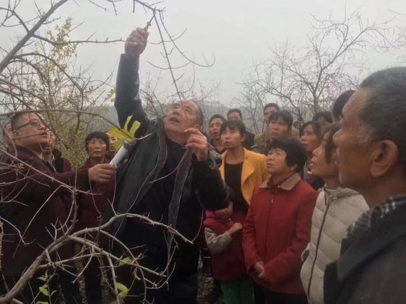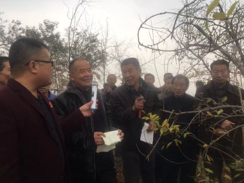 2018年11月10日,我院在承担中央财政支持的林业科技推广“以色列软籽石榴标准化栽培示范推广”项目基地——新安石井镇明庄园石榴种植园举办软籽石榴冬季修剪现场培训。特邀荥阳市政协委员、荥阳小诏峪石榴种植专业合作社理事长、荥阳市林果行业农民技术带头人、从事石榴种植40余年具有丰富实践经验的刘雪林现场示范授课。新安石井镇石榴种植户、嵩县黄门村石榴种植户代表、淅川豫淅红公司石榴培育专业技术人员代表一百余人人参加培训。我院“以色列软籽石榴标准化栽培示范推广”项目组免费为参加培训的广大软籽石榴种植户每人发放1份学习手册和1个修枝剪。项目负责人姚方教授主持此次培训活动。