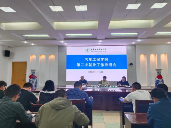 为深入贯彻落实河南省教育厅关于高校毕业生就业工作的决策部署,4月15日下午,汽车工程学院在第六会议室召开2025届毕业生第二次就业工作推进会,对学院就业工作进行再部署,会议由学院党总支书记刘艳花主持,副院长宋武强、赵佳及全体辅导员、专业班主任参加会议。