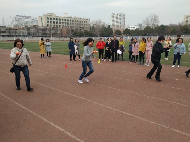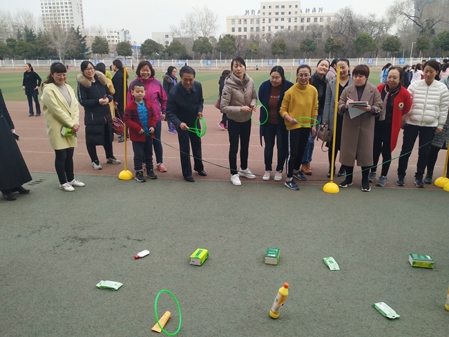 值三八国际妇女节来临之际,为营造健康、温馨的节日氛围,丰富我院女职工的业余生活,展现女职工的风采,提高广大女职工的身体素质,学院工会于3月8日下午在运动场组织开展了趣味活动。学院党委书记吴国新、院长宋宏伟、副院长路买林到活动现场,向女职工致以节日的问候,并为参赛运动员加油助威。