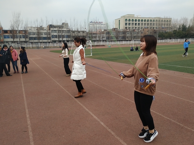 比赛项目包括:一分钟跳绳、托乒乓球往返跑、套圈。赛前,各位女教工积极做着各种准备活动:活动筋骨、商量对策。比赛过程中,女教工们纷纷使出看家本领,只见跳绳飞快地甩着、套环旋转地落下……整个赛场,喊声、笑声不绝于耳,教师们在感受节日欢乐的同时,也体会到了院领导的重视和关怀。
