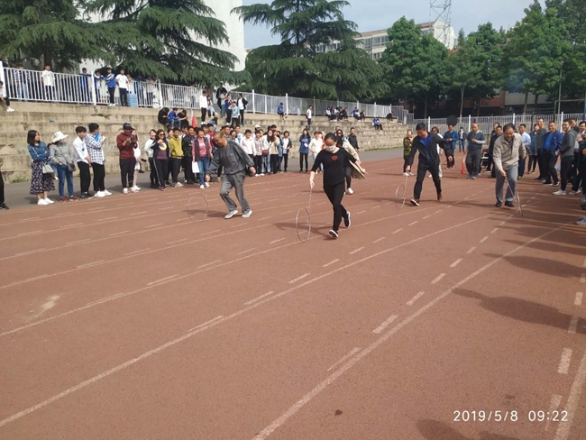 此次教工组趣味项目设有滚铁环、摸石过河、两人三足、心心相印、后抛实心球等5个单项和旋风跑(8人)1个集体项目。比赛场上,老师们轻装上阵,团结协作,默契配合,相互鼓励,尽情享受趣味运动的轻松快乐,每一个动作、每一次配合协作都成为精彩瞬间,欢呼声、呐喊声、比赛过程中的打气加油声把体育场汇成了一个欢乐的海洋。