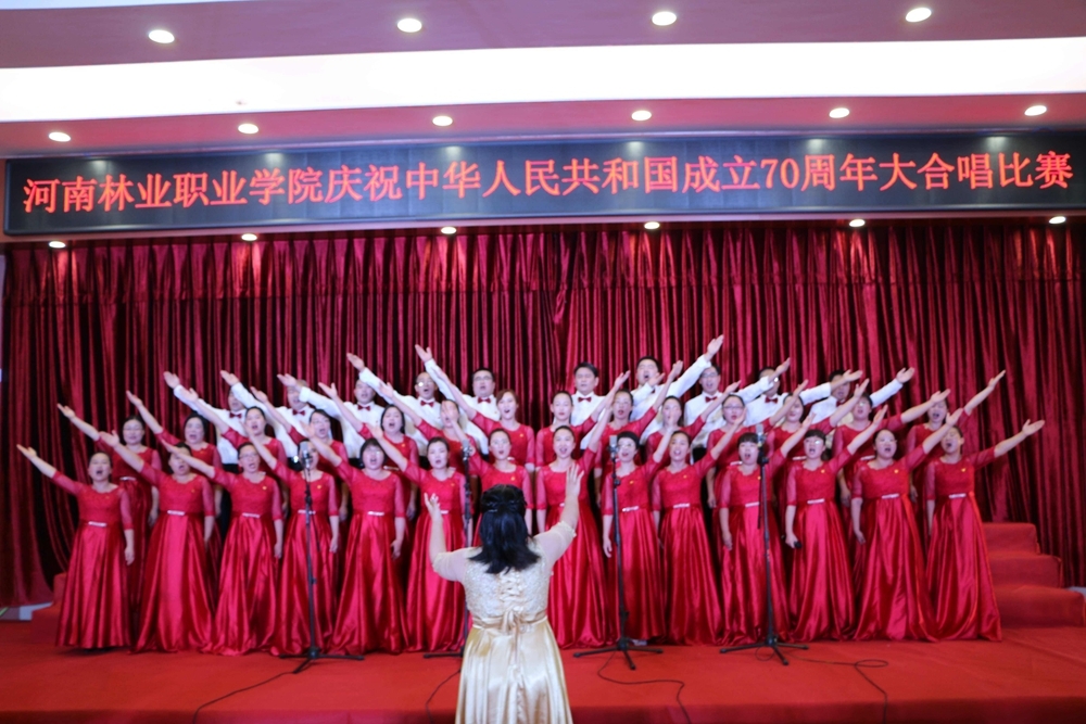 为庆祝中华人民共和国成立70周年,颂扬新中国取得的辉煌成就,抒发广大教职工爱党爱国热情,不忘初心,牢记使命,9月28日下午,我院庆祝新中国成立70周年教职工大合唱比赛在文化交流中心举行。