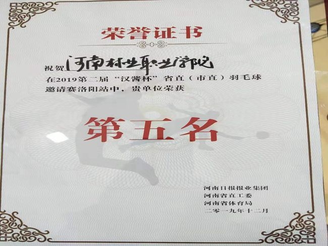 2019第二届“汉酱杯”河南省直(市直)羽毛球邀请赛洛阳站比赛于2019年12月7日在洛阳师院胜利闭幕。河南林业职业学院羽毛球队参加了比赛。