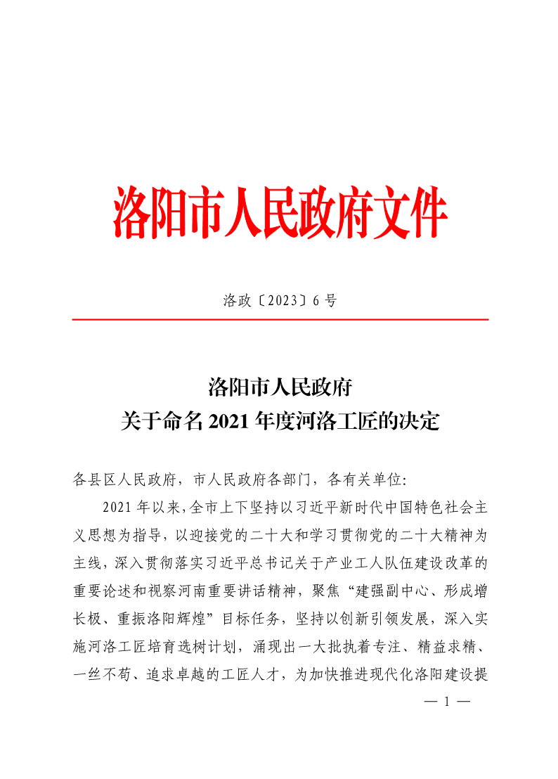 附件:《关于命名2021年度河洛工匠的决定》洛政〔2023〕6 号