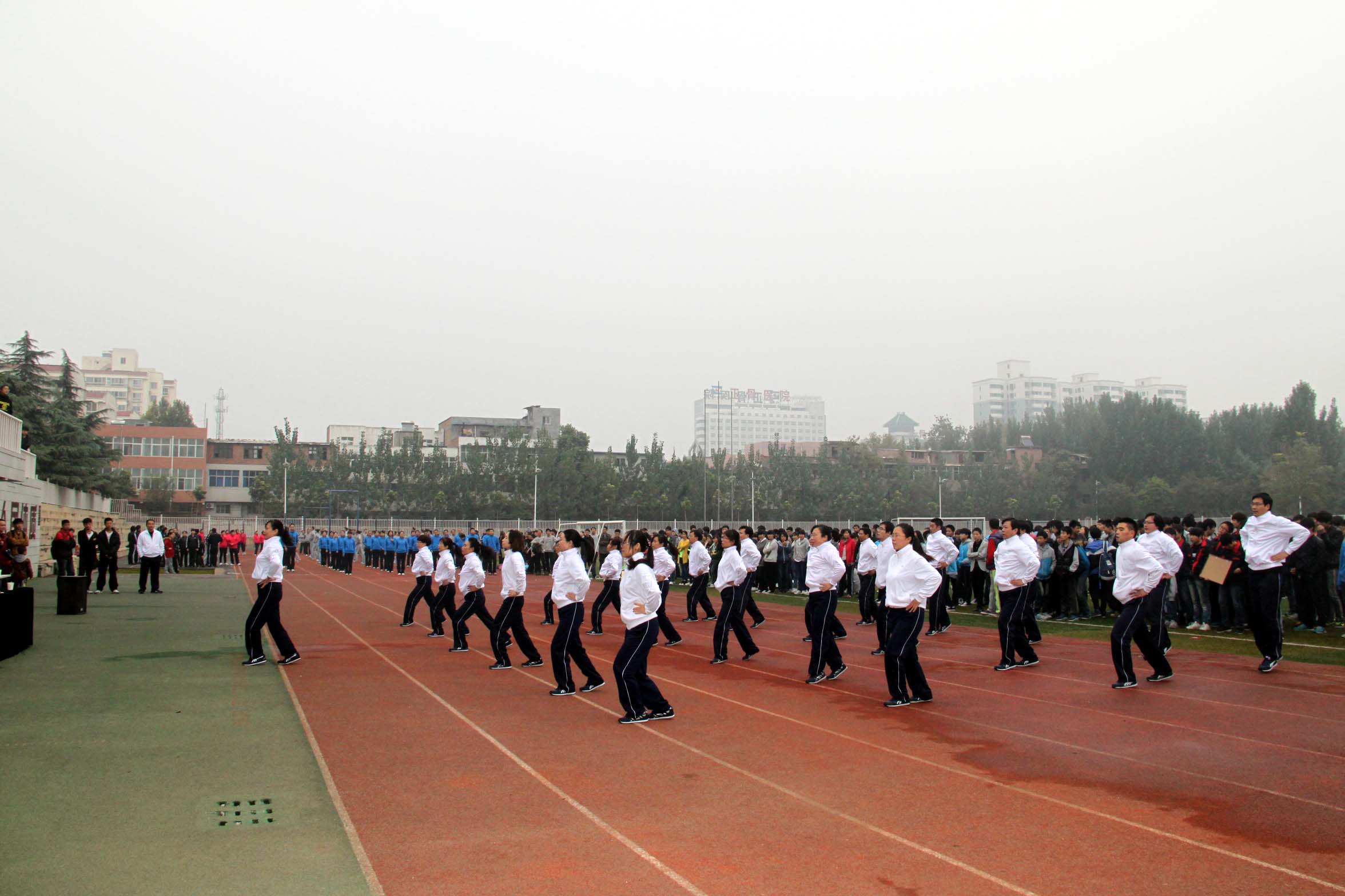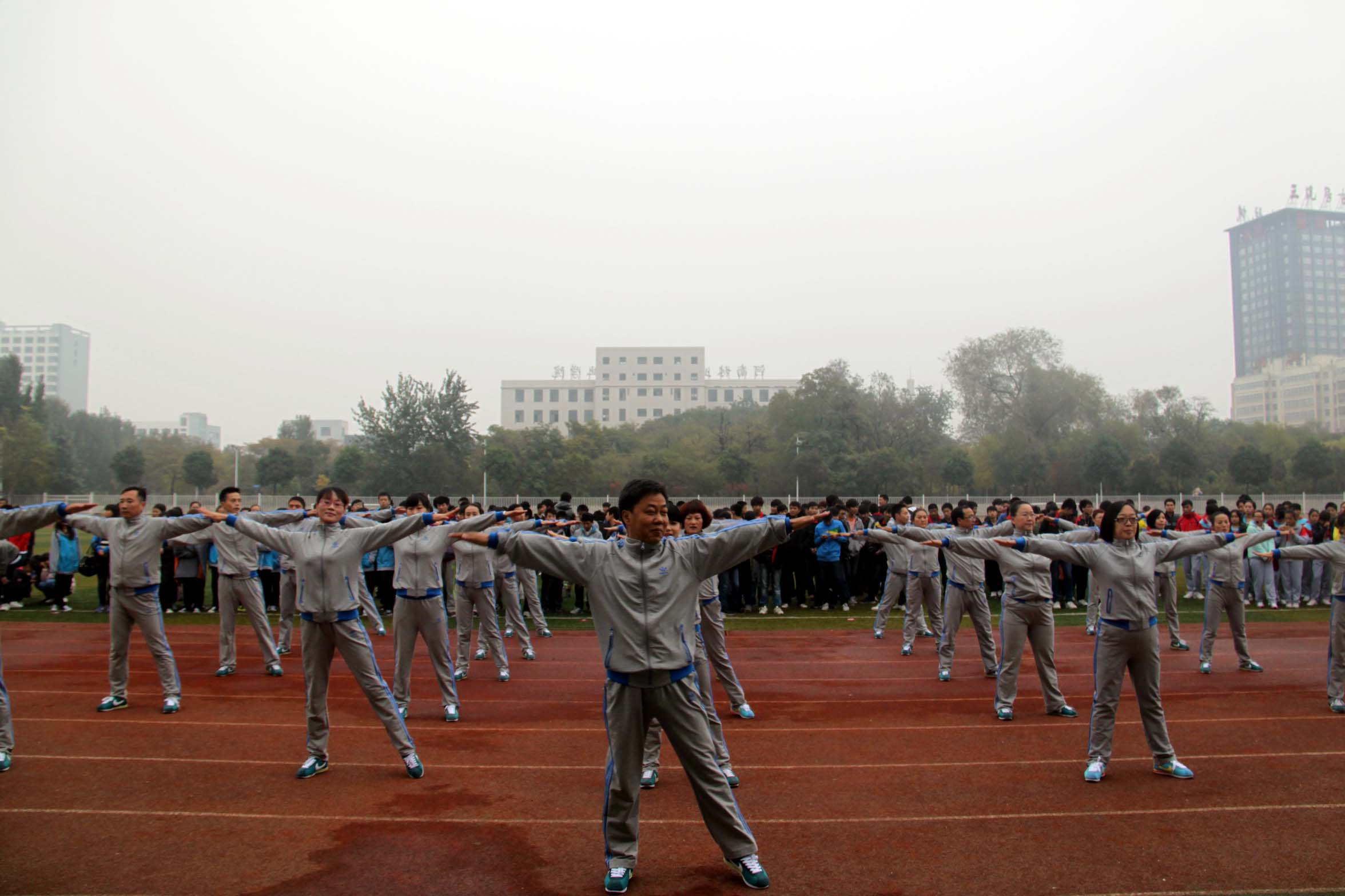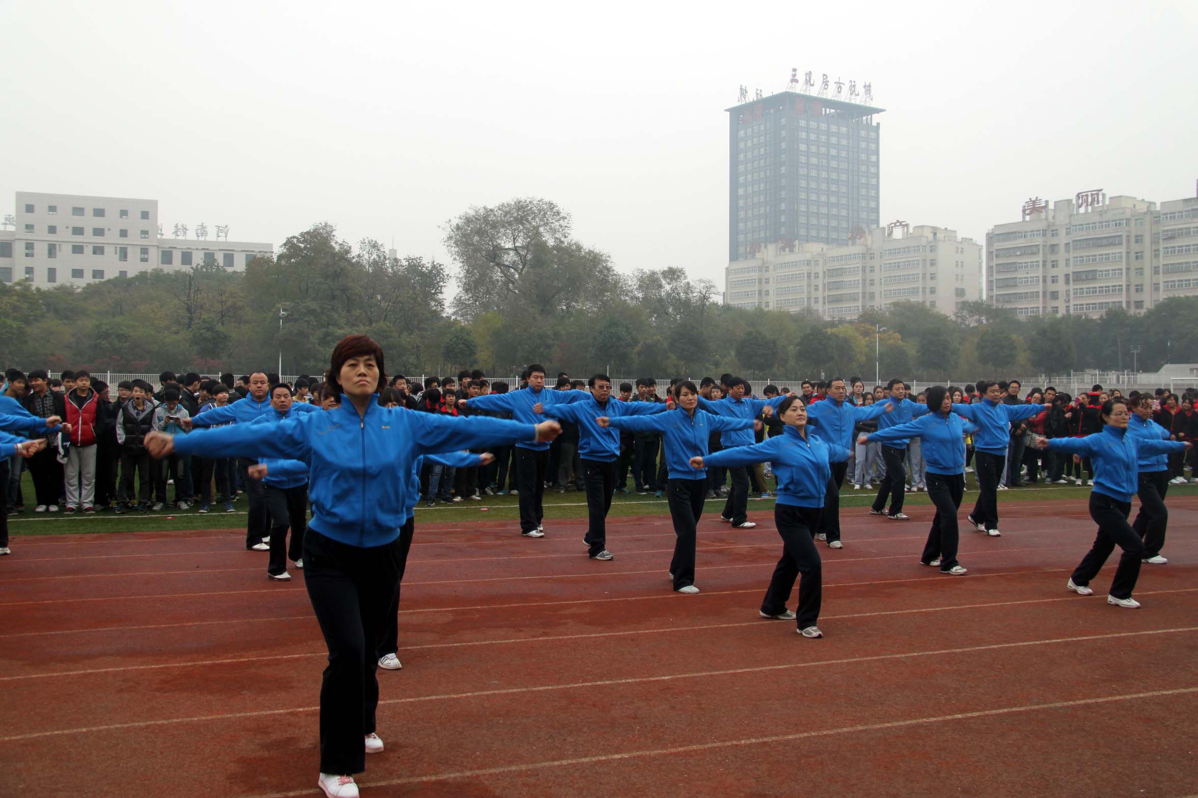 11月1日下午课外活动时间,秋雨初歇,我院教职工第九套广播体操大赛如期在运动场盛大举行。这是我院近年来教职工举办的规模最大、群众性最广泛的一次大型体育比赛活动。院长吴国新,院党委副书记房国华,副院长刘宗利、路买林,院长助理刘耀玺、葛祖鸣等观看并参加了比赛。比赛由院工会和体育教研室共同举办。