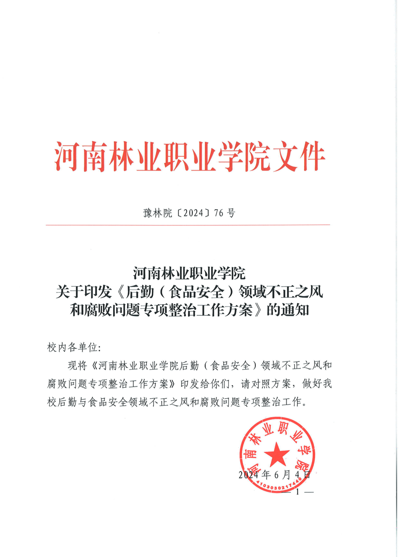 关于印发《后勤(食品安全)领域不正之风和腐败问题专项整治工作方案》的通知 作者:综合管理科 来源:后勤服务中心 发布时间:2025-04-15 08:47:52 浏览次数: 次 【字体:小 大】 终审:王晋晋 分享到: 【打印正文】