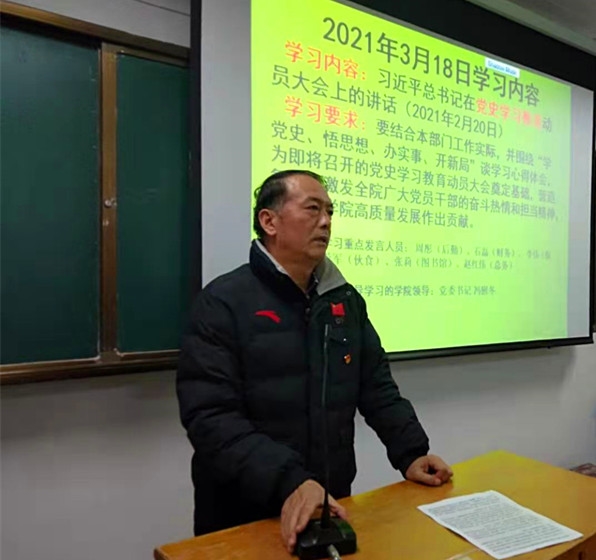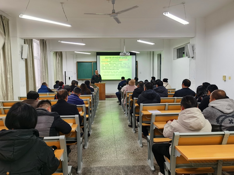 2021年3月18日下午,按照学院党委的统一部署,后勤组在综合楼1206教室举行本学期第三次集中政治学习。学院党委书记冯慰冬参加学习并提出指导意见。总务处、后勤服务中心、财务处、保卫处、图书馆、伙食处等六个部门44名同志参加了学习。