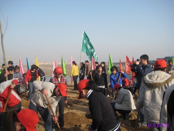 本次植树节活动由洛阳市政府组织、全市各行各业的人员参加,安排我校40人参加。由于学生报名踊跃,当天共参加50余人。在后勤服务中心绿化办公室刘德芳主任的带领下,全部参加学生早上8:30到达洛浦公园东段南岸,按照指定地点、分配的任务立即投入到植树活动中。在带队老师的精心指导下,全体同学按照植树规程、技术要求一丝不苟地作业。经过三个多小时辛勤工作,共种植金丝柳、白腊等树种100余棵。
