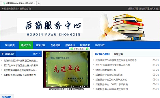 近日,后勤服务中心网页初步建成并投入使用。该网页的建成使用,为提高后勤服务中心的信息化服务和管理水平 ,贯彻后勤服务中心“主动、专业、用心、科学”的服务理念,更好地服务师生员工,提供了网络支持和交流平台。