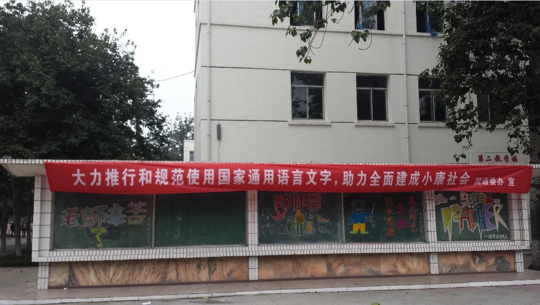 推普周开始前,在院广场悬挂全国推普周活动主题:“大力推行和规范使用国家通用语言文字,助力全面建成小康社会。”宣传横幅,营造活动的气氛。期间,以推广普通话为主题,举办全院学生经典诗文诵读比赛,提高了同学们对学习和使用普通话的学习兴趣,促进了我院普通话宣传工作的深入开展;在教学楼门口张贴了各种推普宣传标语,要求各班级结合本届推普周主题,制作板报等,以多种途径给同学们以提醒和鞭策。同时,为积极倡导全院教师勤练教学基本功,展示教师风采,同时督促老师规范用字,发挥老师以身示范的作用,学院语委办特在第十九届推广普通话宣传周期间举办教师硬笔书法比赛,并得到了教师们的普遍关注。