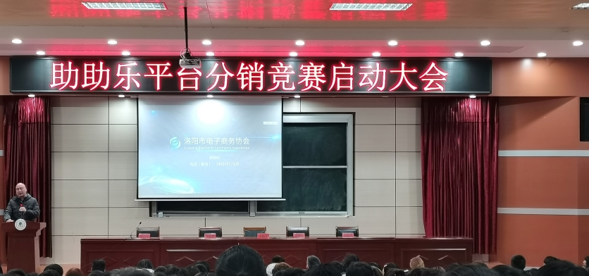 2020年12月8日中午12:30在东阶梯,经贸系举办了经贸系举办“助助乐”分销大赛开幕式,参加本次会议的有特邀嘉宾:洛阳市电子商务协会会长梁铁旺教授、河南三亩地电子商务有限公司CEO郭静雯女士。经贸系书记李继东老师、经贸系教学主任张淑英老师、经贸系市营电商教研室主任孙长平老师、市营电商教研室老师们和全体20级市营电商跨境班级学生、部分会计专业学生。