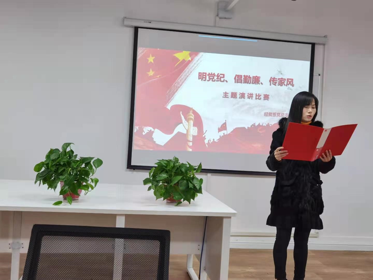 经贸系党总支开展“明党纪、倡勤廉、传家风”主题演讲比赛