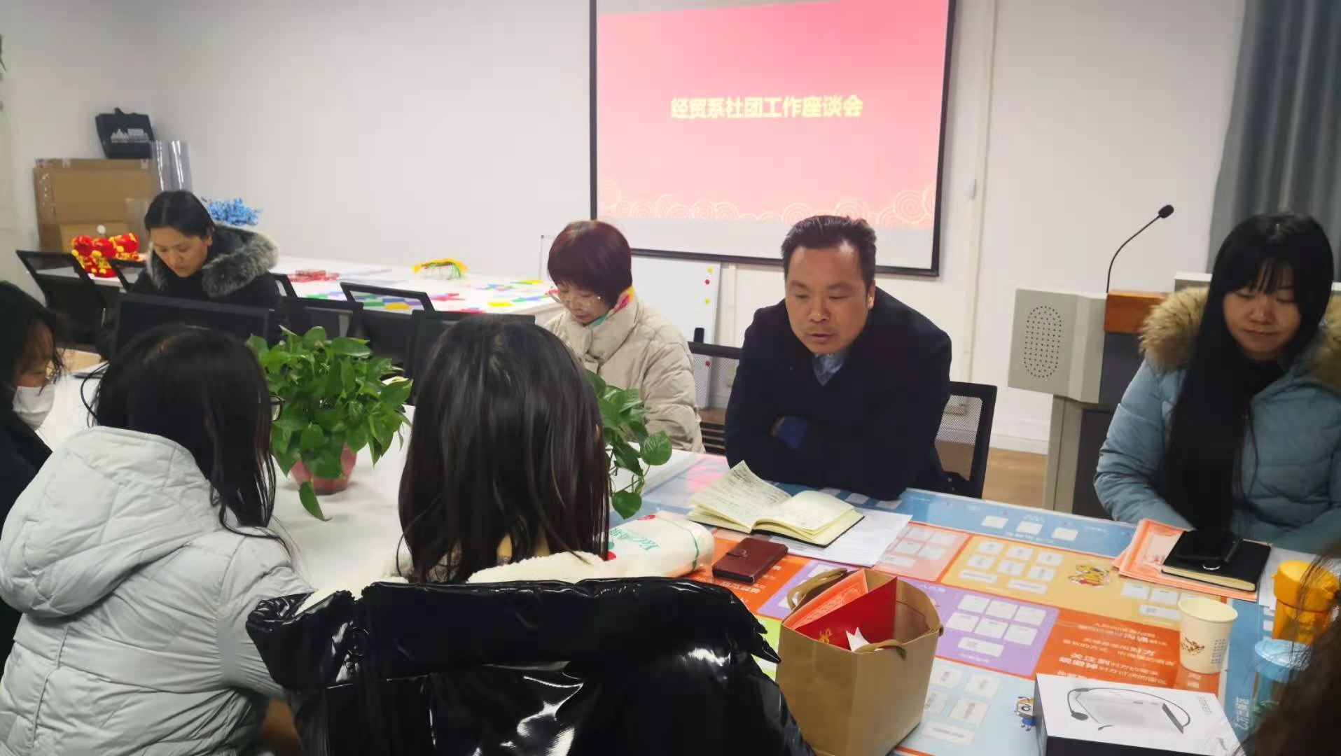 12月23日下午,经贸系于ERP实训室召开社团管理工作会议。经贸系党总支书记李继东、副主任张淑英出席会议,各社团指导老师参加了会议。本次会议由李继东主持。