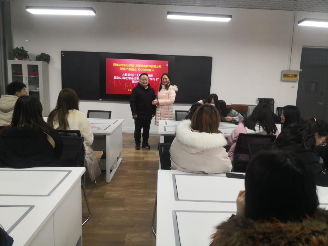 为了深化校企合作,助力我院经贸系会计专业初级会计师考试的通过率,郑州胜鑫有限责任公司向会计专业捐赠初级会计师考试学习卡100张。本仪式于2021年1月5日下午四点半在ERP实训室举行,经贸系教学主任张淑英老师、郑州胜鑫软件有限责任公司总经理李辉辉出席了本次仪式、经贸系会计教研室主任金鑫老师,教师代表彭娣娣老师参加了赠卡仪式,仪式由金鑫老师主持。