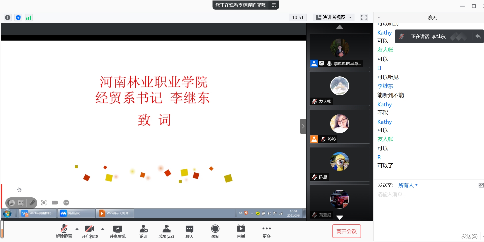 最后郑州胜鑫软件有限公司李辉辉李总进行总结,祝河南林业职业学院互联网会计信息化实战教材编写顺利,也祝广大师生新春快乐!