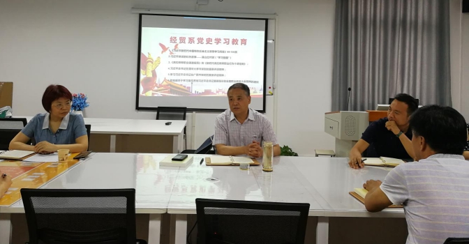 6月3日下午4:50, 经贸系党总支全体党员在ERP实训室进行了党史学习教育集中学习,学院院长宋宏伟到场指导,经贸系党总支书记李继东主持。