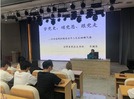 6月15日晚19:00,经济贸易系党总支书记李继东在西阶梯为200多名入党积极分子开展了一次以《学党史、颂党恩、跟党走》为主题的授课。