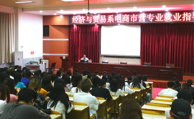 6月17日晚7:00在东阶梯,经贸系党总支书记李继东为19级电子商务、市场营销、跨境电商专业学生进行就业专题讲座。