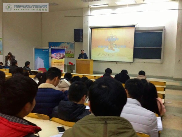 2015年12月17日下午4时许,经贸系邀请中荷保险公司专程为学生开展“保险知识讲座”,讲座在我校东阶梯教室举行,参加本次讲座的有经贸系副主任康文涛老师、石珺老师、石慧老师和中荷人寿保险有限公司韩经理、销售代表鲁飞等。