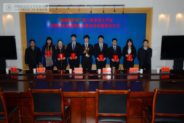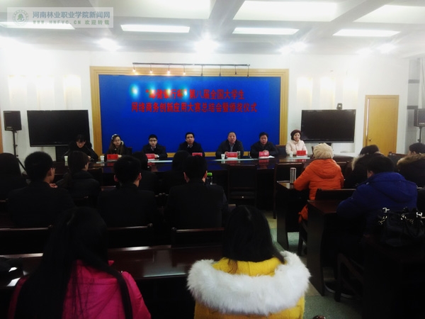 2015年12月30日下午,在办公楼三楼三会议室隆重举行了“邮储银行杯”网络商务创新应用大赛总结会与颁奖仪式,中国邮政储蓄银行洛阳市分行李建有副行长,中国邮政储蓄银行洛阳市分行电子银行部孟哲总经理,中国邮政储蓄银行洛阳市分行胡洁企业教官、河南林业职业学院副院长路买林,经贸系主任李海龙、经贸系副主任康文涛、经贸系市场营销电子商务教研室全体教师以及经贸系高职的学生代表参加了总结大会与颁奖仪式。