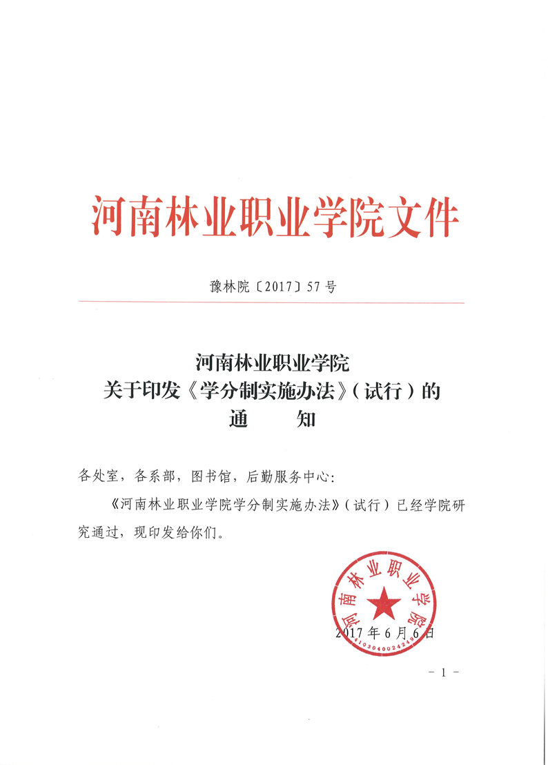 河南林业职业学院学分制实施办法(试行)
