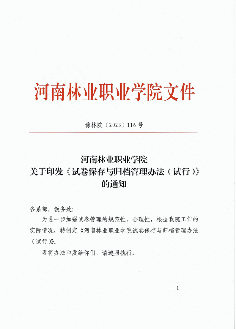 河南林业职业学院试卷保存与归档管理办法(试行)