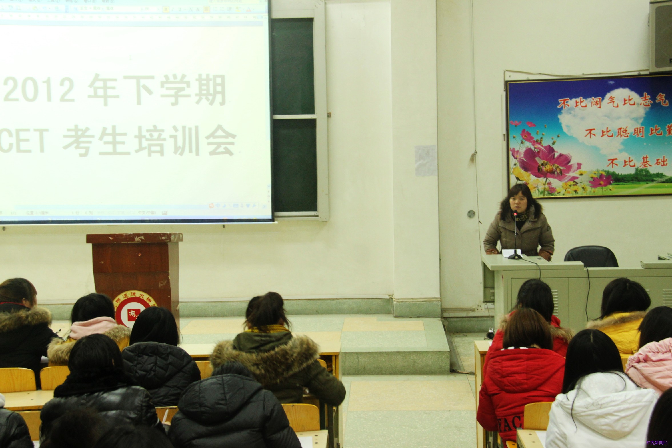 为落实好大学生英语四六级考试工作,严肃考风考纪,提高考试质量,我院于2012年12月19日周三下午16:30在办公楼西阶梯举行英语四六级考试动员大会。本次大会由教务科李世勇副科长主持,学生科刘艳华副科长及此次全体参考学生参加了本次动员大会。