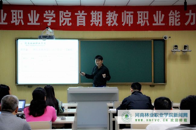 为进一步加强师资队伍建设,促进教师职业能力提升,提高教育教学质量,5月6日上午,河南林业职业学院首届教师职业能力测试在实训楼录播室举行,特邀辽宁林业职业学院科研处处长张梅春、高教所主任徐岩、建筑学院院长覃斌担任评委。院长吴国新、副院长路买林亲临现场观摩。
