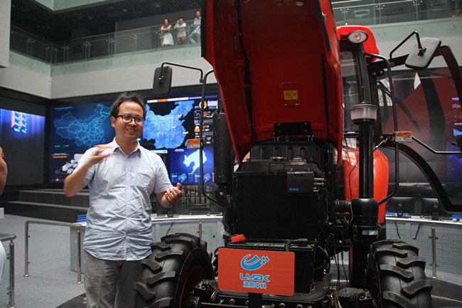进入平台,首先看到的一台智能拖拉机,它的核心装置了北斗星远程控制器,里面不仅有GPS定位还有监测设备,能够有效监控拖拉机的实时情况。互联网++众创空间项目负责人张玉成博士介绍,在目前国内的许多农耕项目中,大型农用机械大多靠租赁,而租赁过程中产生的超载、超速甚至丢失等问题却不能得到很好解决。装上北斗星远程控制器以后就能够实时监测拖拉机的位置、速度,一旦出现违规情况,智能装备就能立即终止这台拖拉机的运动。这台智能拖拉机是该平台目前最为成功的创业项目。