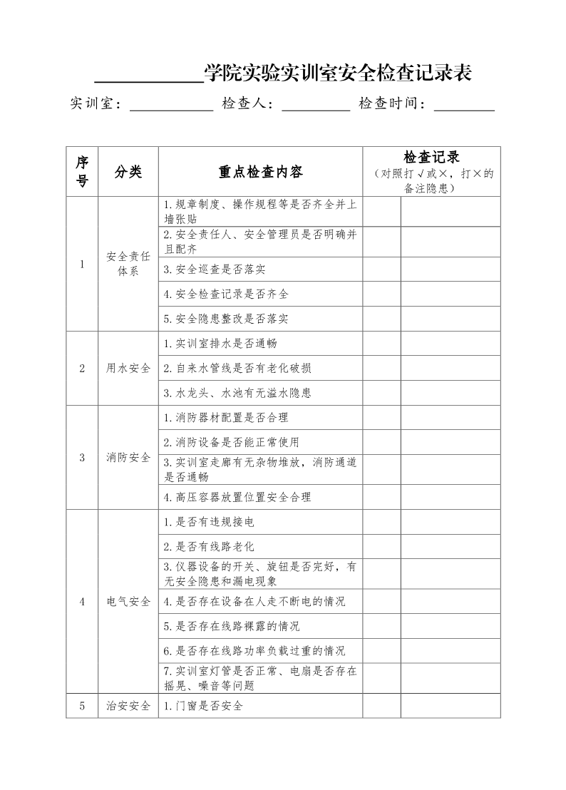 学院实训室安全检查记录表