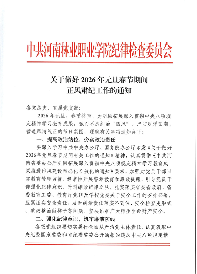 关于做好2026年元旦春节期间正风肃纪工作的通知
